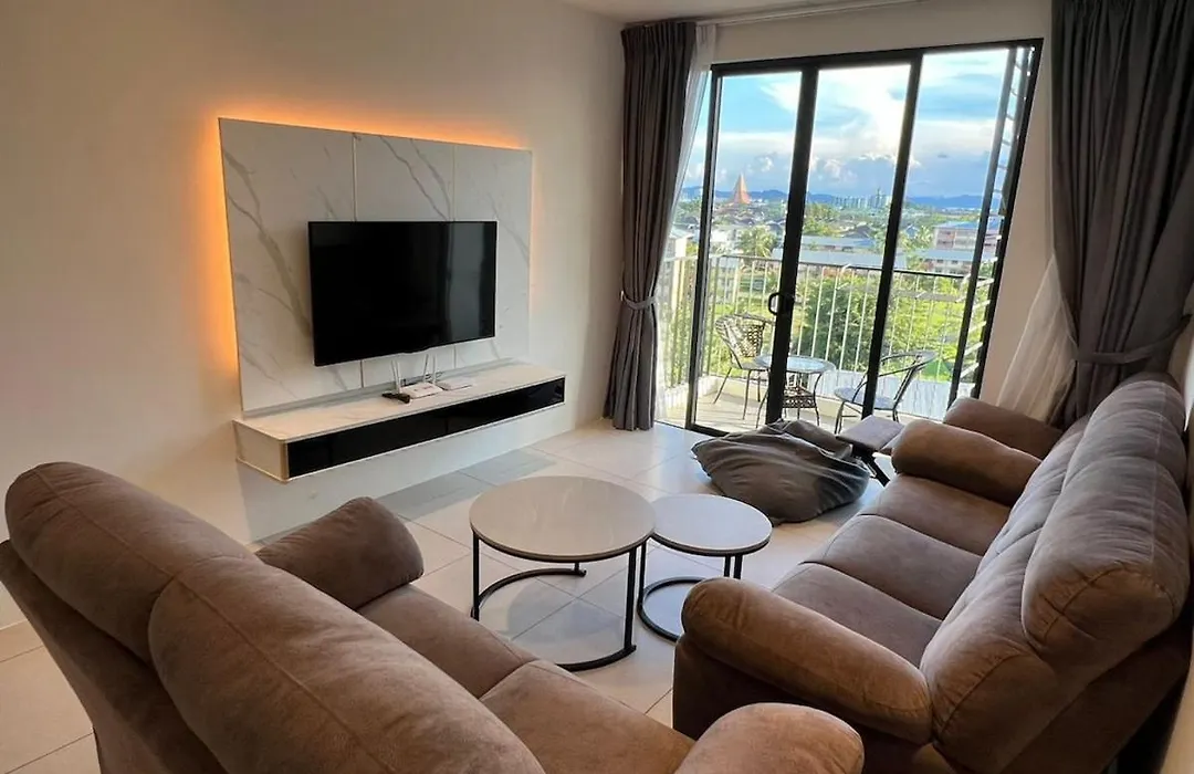 Armadale Galacity Kuching 5 Pax apartment includes a balcony and a fully equipped kitchen with air conditioning for utmost comfort.